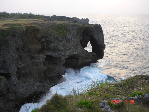 這就是旅遊書上很有名的万座毛景點,別看這樣好像風平浪靜,其實風超大的!