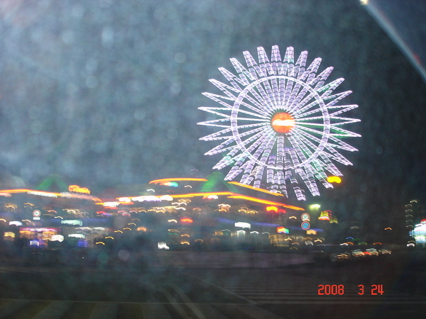 美國村有名的摩天倫,外面沒有在下雨,那是車玻璃沒擦,髒髒的 XD